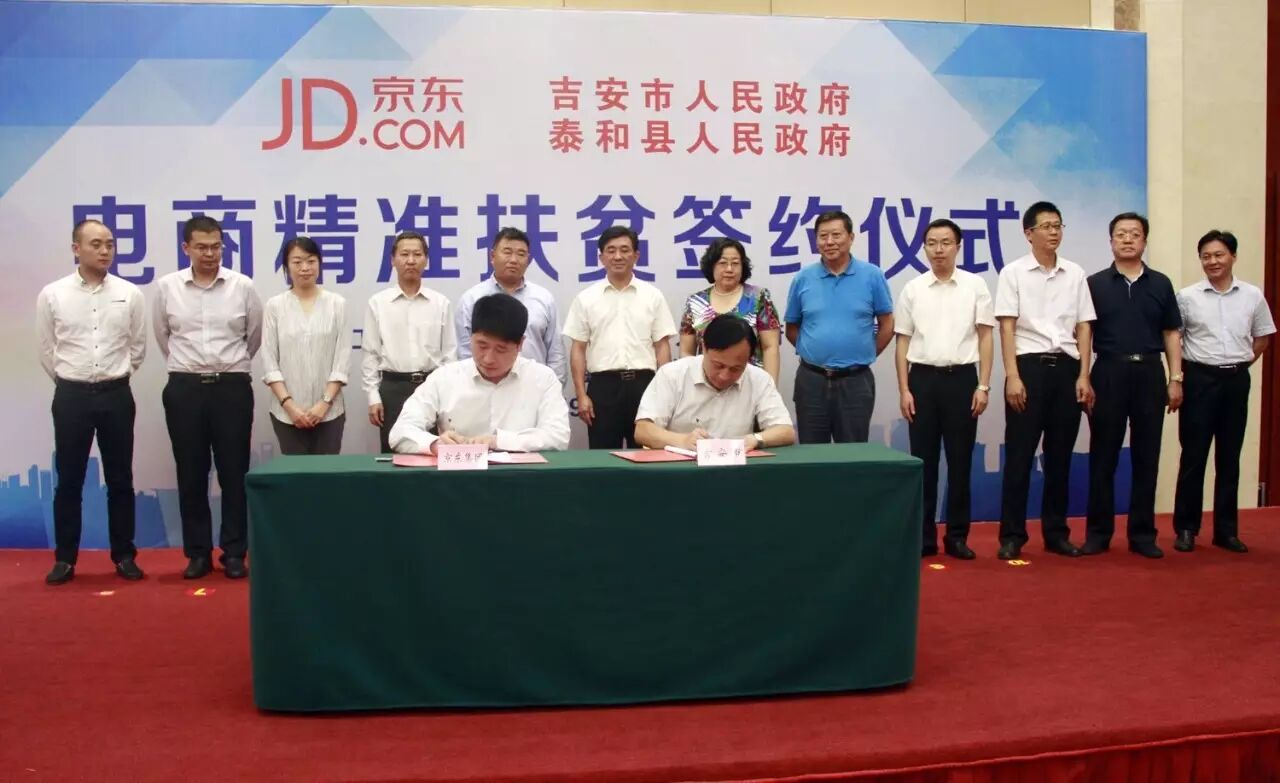 9月27日,京东集团“重走长征路、扶贫万里行”电商精准扶贫党建活动在江西省井冈山市隆重启动。国家工商总局办公厅副主任刘烨,江西省工商局副巡视员袁建军,吉安市市委常委、总工会主席刘贤清,京东集团执行副总裁蓝烨,京东集团副总裁、党委书记龙宝正,京东集团副总裁曲越川等出席了启动仪式。京东扶贫万里行活动旨在深入落实国家扶贫战略,发挥京东自营式电商平台优势,充分调动社会各方力量共同推动区域扶贫工作。在扶贫万里行活动期间,京东集团还与吉安市、泰和县分别签署了电商精准扶贫战略合作协议,共同推进在农村电商、创新扶贫、农资金融服务等领域的深度合作。