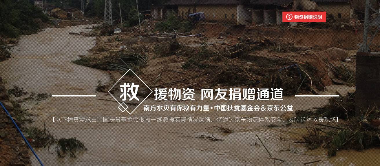 通过“南方水灾救援物资网友捐赠通道”,京东将包括手套、牙膏、防潮垫等多种救灾物品以“爱心价”供网友进行购买捐赠。据了解,该页面的救灾物资都是根据中国扶贫基金会一线调研反馈进行遴选的,能够及时满足灾区最为迫切的生活需求。网友通过救灾通道直接认购相关救灾物资,此后捐赠物资将通过京东成熟的自建物流体系免费运往灾区,帮助南方受灾地区群众渡过难关。