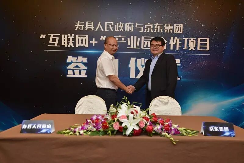8月23日,京东集团与安徽省淮南市寿县人民政府达成合作意向并签订合作协议,共建“互联网+”产业园基地。