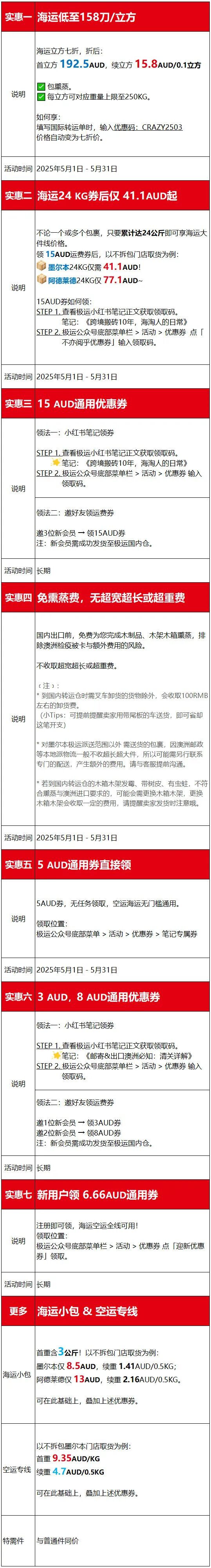 寄澳洲运费福利?