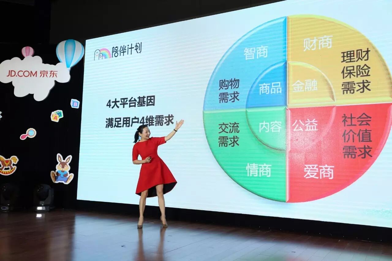京东“陪伴计划”一站式综合体验平台以4大平台基因(智商、情商、财商、爱商)满足用户4维需求,即购物需求、交流需求、理财保险需求、社会价值需求,为家庭育儿保驾护航。