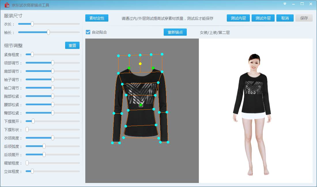 京东试衣间是基于人工智能和仿真技术的虚拟试衣系统,此前已有iPad版本,如今在手机移动端也已上线。目前,京东试衣间可以支持大量服装跨店铺的多层次任意搭配,商家们也可在后台制作立体感十足的搭配图示,并且操作极易上手。