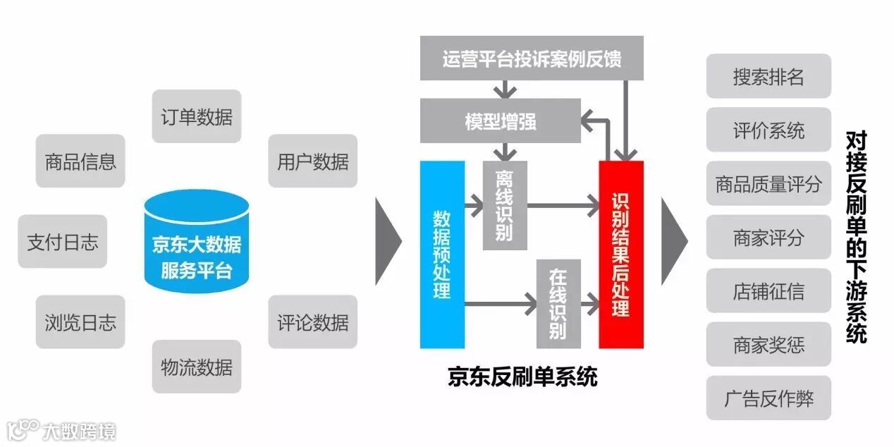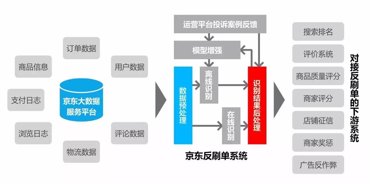 作为京东“天网”中的重要环节之一,京东反刷单系统可以精准识别京东商城刷单相关的恶意行为。利用京东自建的大数据平台,京东反刷单系统从订单、商品、用户、物流等多个维度进行分析,分别计算每个维度下面的不同特征值。目前,反刷单系统已建设完成200余个维度的覆盖。
