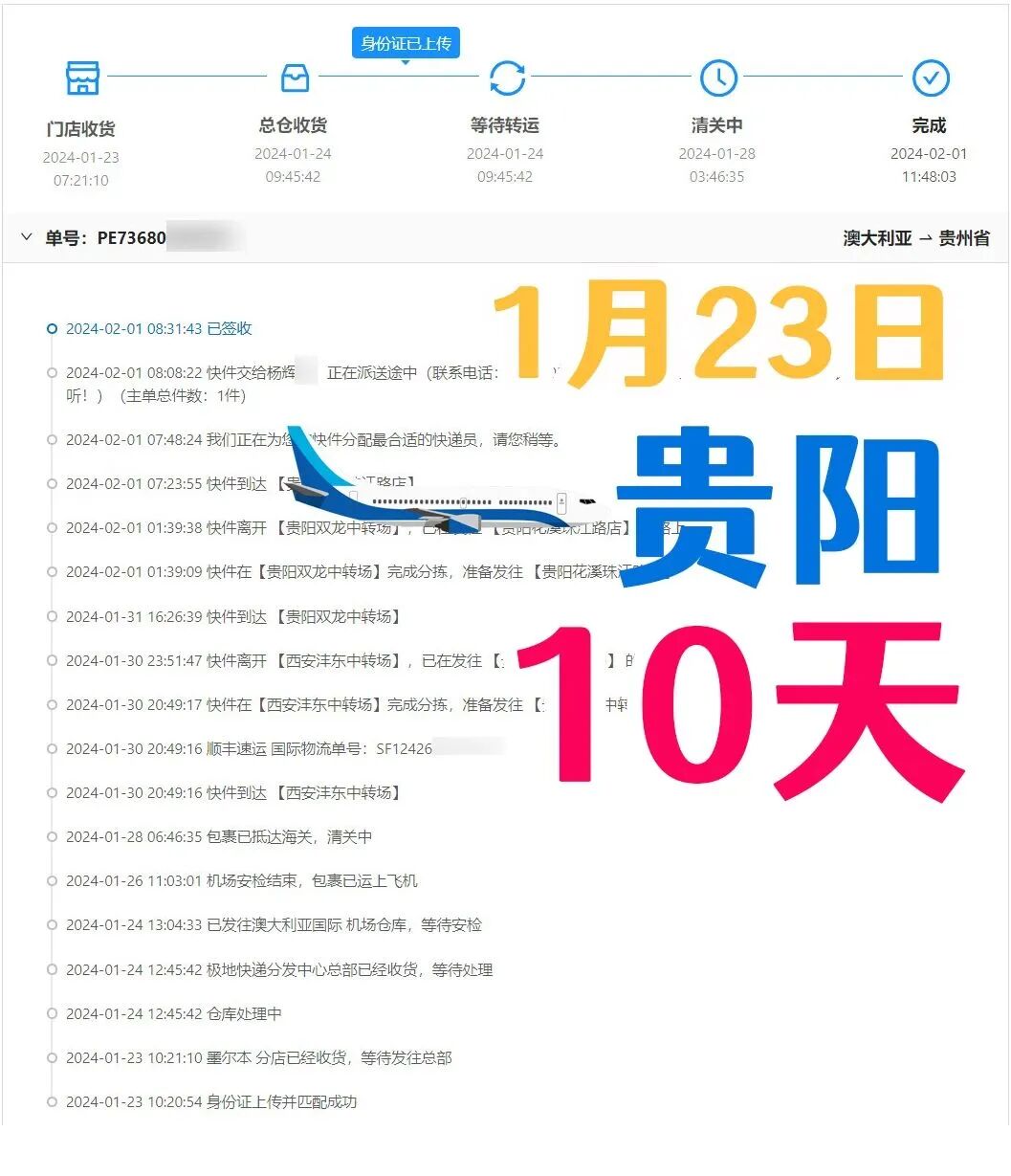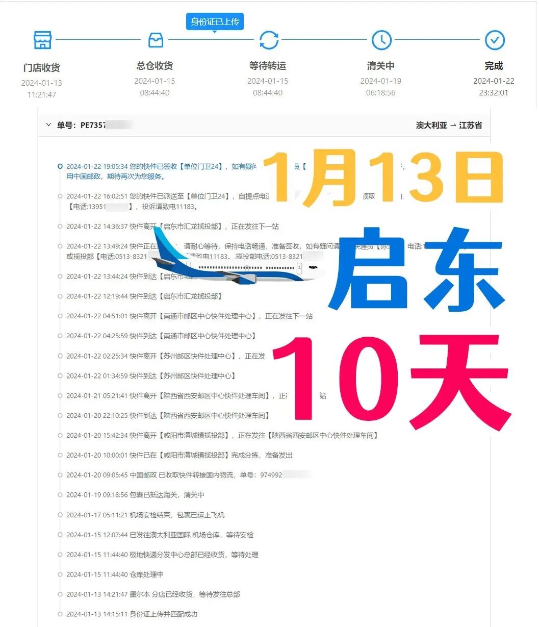 澳洲寄回国,时效多在8-13天左右,因大家的提货时间、提货方式、所寄物品与天气、查验等情况而不尽相同。随着海关与快递陆续复工,跨境邮寄时效也逐渐恢复如常。也欢迎大家寄件前与极地客服联系,了解最新的提货时间与时效吖,以便规划寄件安排~