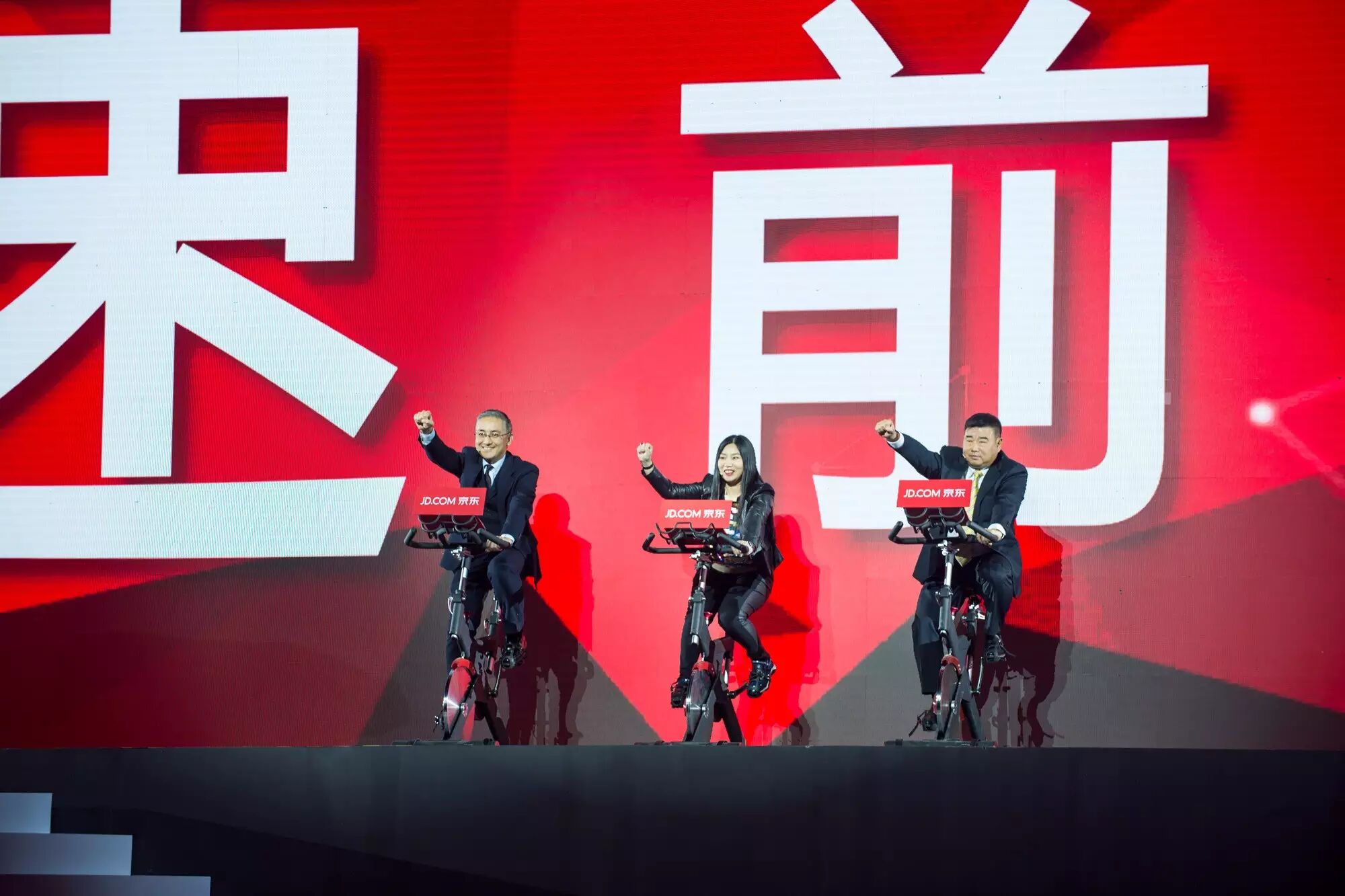 如今,京东变大了,高管们演讲都玩出新花样了。就在昨天的2016年京东集团年会上,京东集团首席财务官黄宣德、京东集团首席人力资源官及首席法律总顾问隆雨、京东集团执行副总裁蓝烨三大高管组团上台,而且是脚踩智能电动车上台的,说是要绿色出行,当时,我就看了看外面的雾霾天:老大们真是太接地气了。