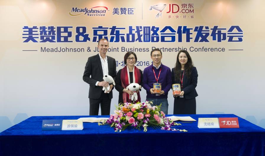 1月21日,以“2016领跑共赢”为主题的2016-2017京东·美赞臣战略合作发布会在京召开,双方就客户关系管理、促销推广、渠道拓展等层面的合作进行了广泛沟通。此举是京东与美赞臣合作的全新起点,双方将以此为契机在品牌推广及销售层面进一步实现双方的优势互补,携手为消费者带来更丰富、优质的奶粉选择和更便捷的消费体验,提升双方在婴幼儿奶粉品类上的市场份额。京东商城CEO沈皓瑜、京东商城消费品事业部总裁冯轶、美赞臣营养品公司高级副总裁及大中华区总裁游佩瑜、美赞臣中国区商务副总裁及副总经理睿恩达出席了此次战略发布会。