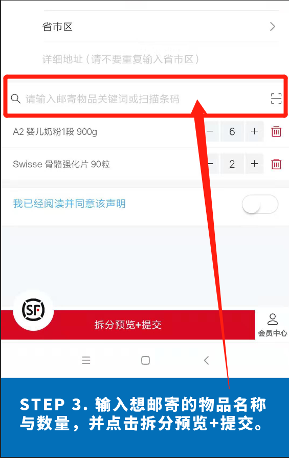 2. 如果您还没准备好邮寄,收寄件人信息不用填写,直接输入物品名称、数量,即可提交预览。
