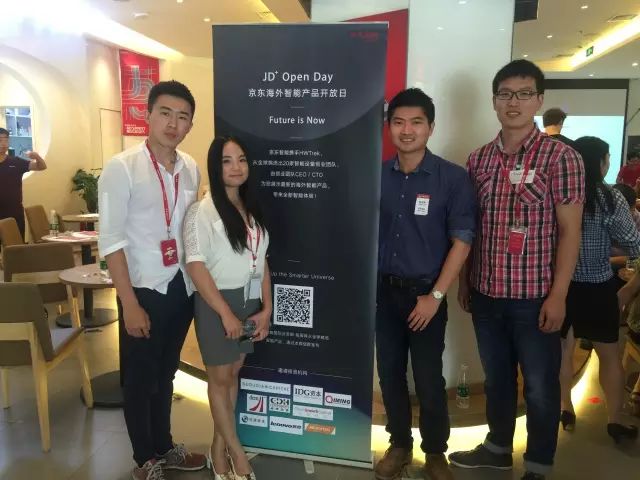 第一届IMT成员京东智能国际业务部总监林志彬(右二),参加来自7个国家、25家硬件初创团队的JD+ Open Day