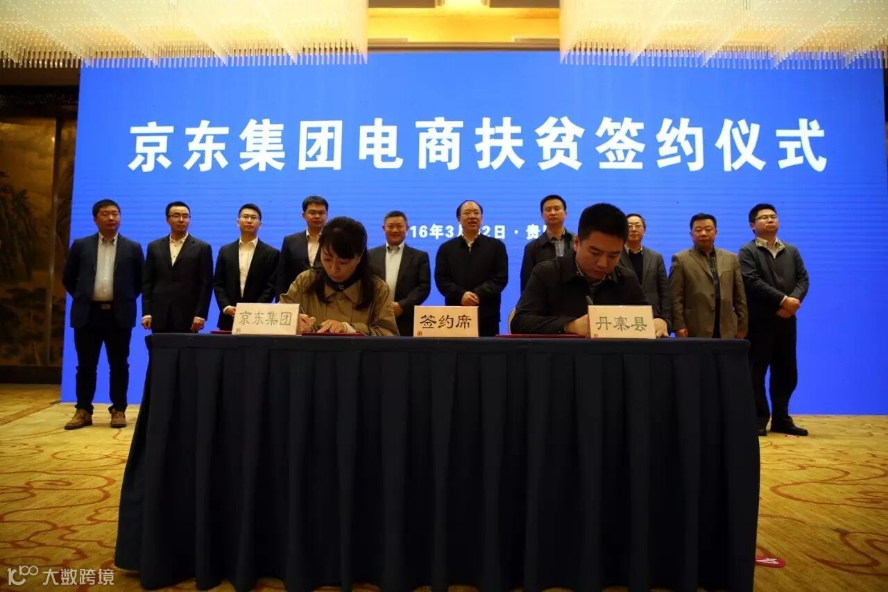 3月22日,京东集团与贵州省扶贫办签署战略合作协议,并正式启动丹寨电商扶贫项目。京东集团将结合企业实际,发挥自身优势,积极响应党中央、国务院及贵州省政府的号召,将互联网与脱贫攻坚工作紧密结合起来。根据协议,双方就抓住电子商务快速发展的重要机遇,加快推进贵州互联网+战略发展达成共识,将在互联网+现代物流、互联网+“三农”、互联网+商贸流通等方面开展紧密合作,促进贵州产业结构转型升级。