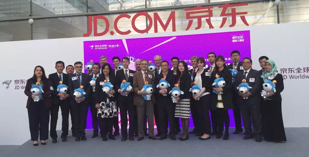 此次活动还得到了德国、荷兰、法国、英国、加拿大、日本、奥地利、希腊、俄罗斯、罗马尼亚、马来西亚、印尼、波兰、爱尔兰、阿根廷、新加坡、泰国等国驻华大使馆参赞,以及欧盟驻华代表团贸易处公参,俄罗斯驻华经济代表处商务副代表,荷兰外商投资局中国事务首席代表, 大韩贸易投资振兴公社中国区副总代表的支持。德国驻华大使馆金融参赞艾贝特(Elsen Robert)作为17国参赞代表上台致辞。他表示,自2015年10月京东全球购在德国召开招商会以来,越来越多的优质德国品牌和产品进驻京东全球购,满足中国消费者日益上涨的对品质生活的追求。