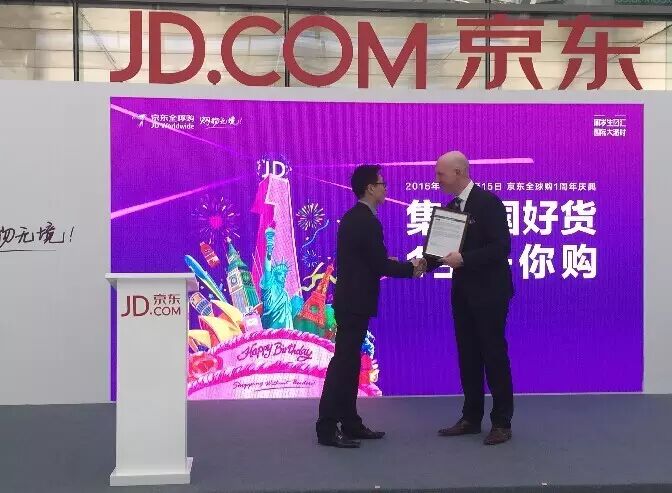 2016年4月13日,京东全球购一周年庆典活动在京东集团总部举行,京东商城CEO沈皓瑜、京东商城消费品事业部总裁冯轶、驻华17国参赞、A2中英区行政总裁Scott Wotherspoon(施文博)、Swisse全球市场及营销总监 Micheal Howard等共同出席并现场为京东全球购庆生。