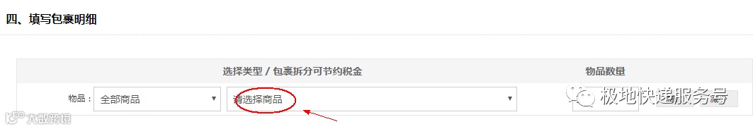 6、填写包裹具体物品及数量。点击中间空格,输入英文品牌名,或者物品中文简称,即可看到自动匹配的列表,选择对应物品即可。修改好物品数量后,如果有更多物品需要填写,点击“增加”即可。