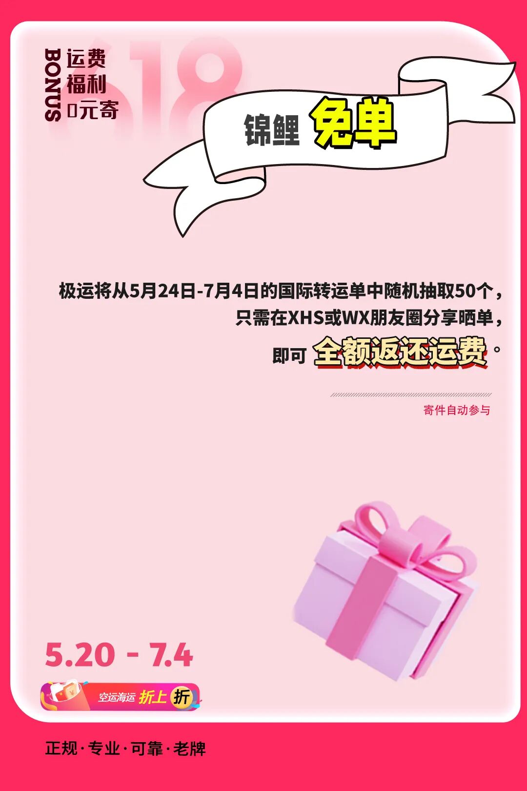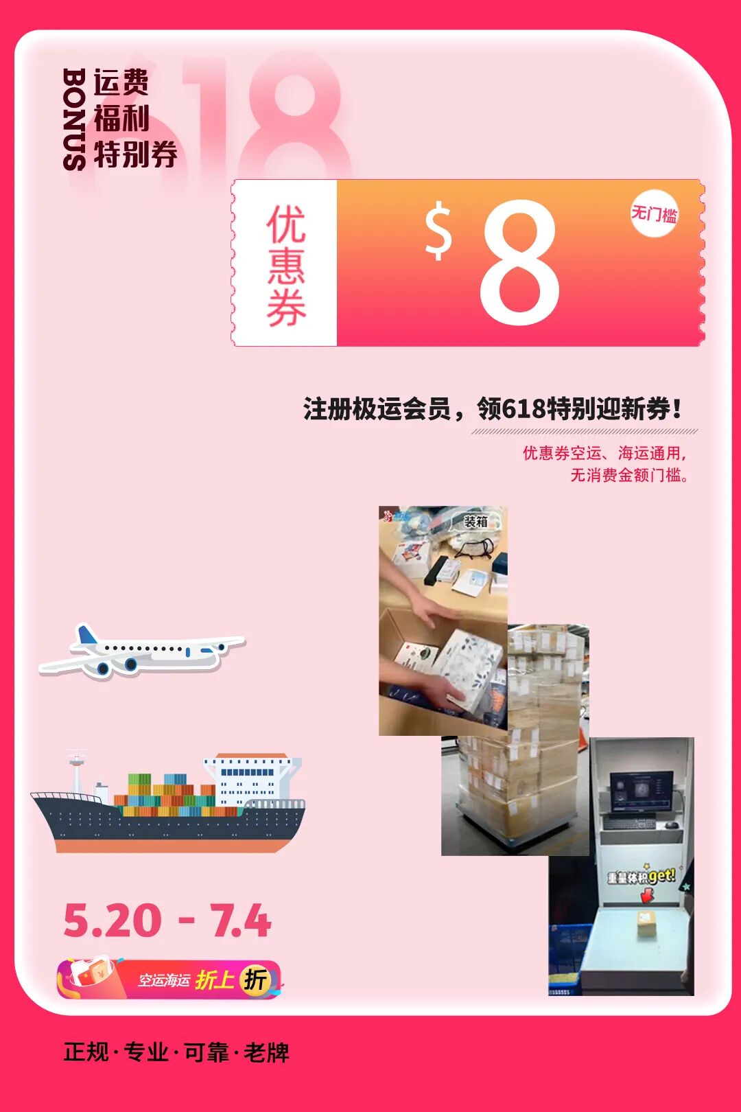 邀请3位新用户注册极运会员,欢迎邀请人领取 $ 15运费券1张;