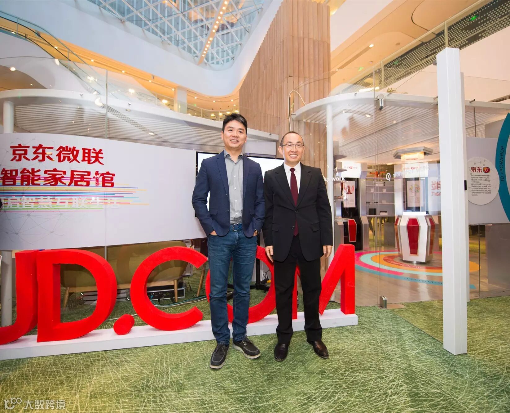 京东集团CEO 刘强东和SOHO中国董事长潘石屹在京东智能展区前
