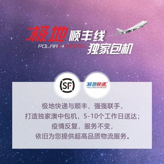 面临国际航班大幅减少的严峻情况,为了保证满足客户的需求、不影响用户体验,极地快递与顺丰排除万难,率先推出澳洲至中国独家包机运输服务,保障疫情之下,国际物流依然能有5-10个工作日送达的“超级速度”。