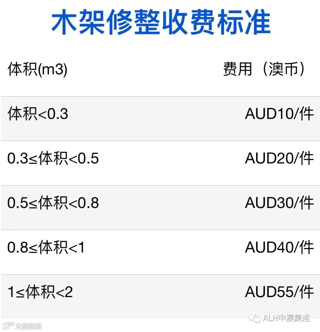 3.监管仓储费:免7天仓储,超期7天后,按照AUD30/立方计费/天,按照实际体积计算