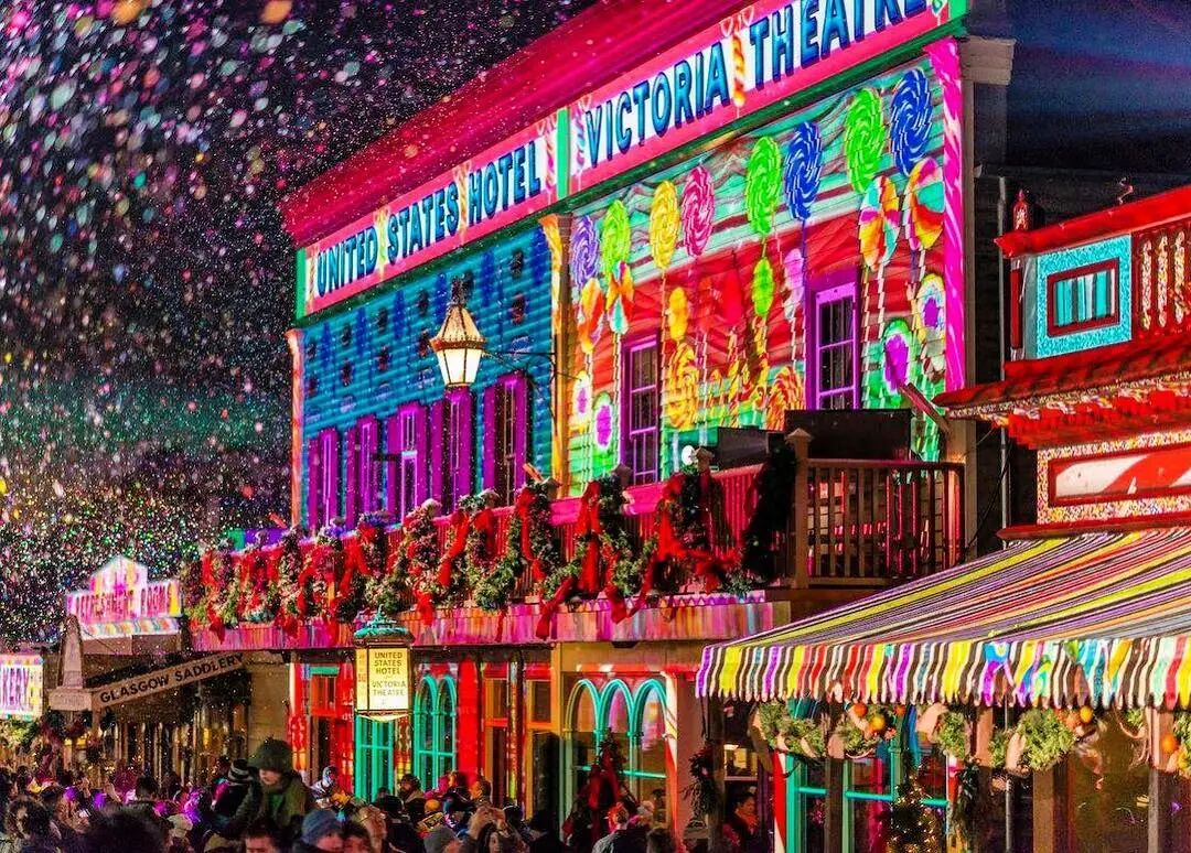 在夜晚,太阳一旦落山,主街上的建筑瞬间被彩色的灯光所笼罩,无论是纽约餐厅、美国旅馆,还是药剂房,主街上的建筑墙面上都会呈现出大面积的灯光效果,让夜晚的疏芬山充满活力,仿佛置身于十九世纪的圣诞节,历史和现代完美融合。