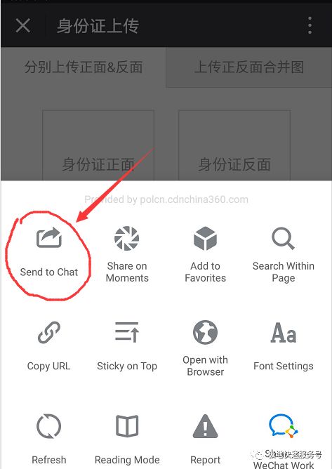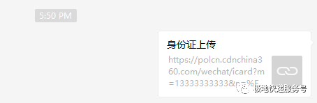 2、点击该条信息,直接跳转到身份证上传页面,点击右上角的三个点,转发该页面给收件人;