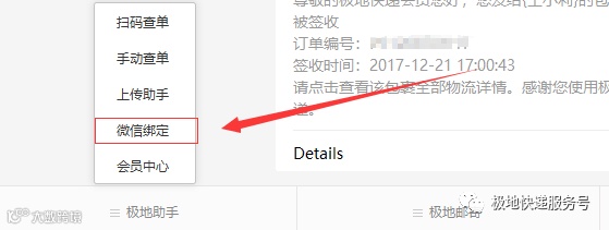 (如果绑定会员信息到极地快递服务号,一次操作,终身免登陆直接进入会员中心)