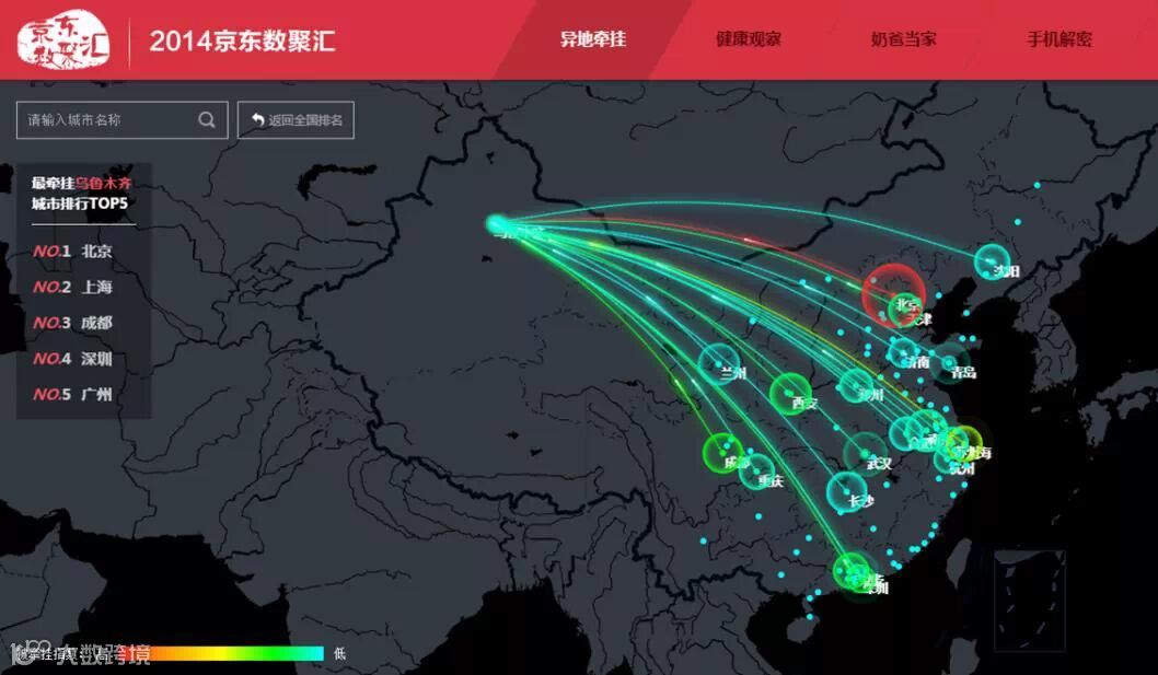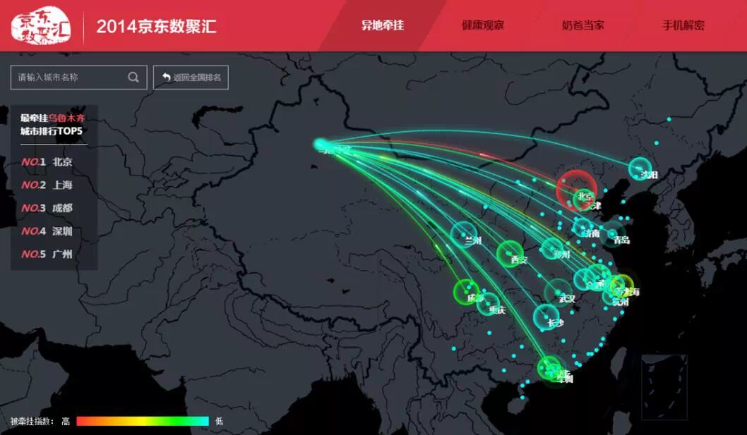 京东数聚汇是京东大数据团队推出的一款数据可视化产品,每年年终通过深度分析网购用户的购物行为,挖掘数据背后的故事。透过这些数据能够清晰的看到人与城市之间存在的联系。