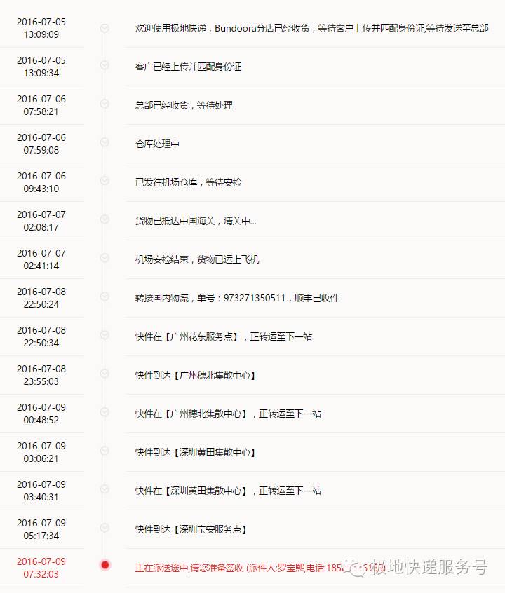 这样您的“极地快递服务号”就能孜孜不倦的为您推送这个包裹的物流更新,直到您收到这个包裹啦!