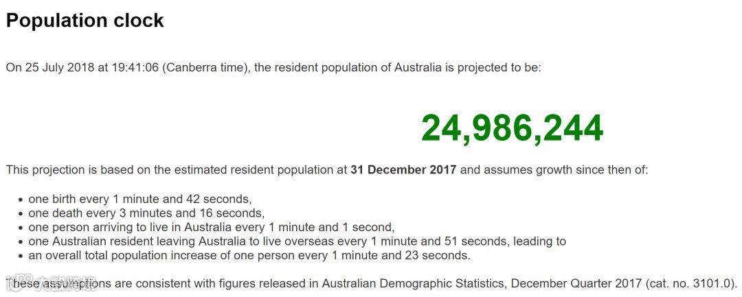 截止2018年7月25日19点41分06秒,澳洲人口达到2498万6244人。