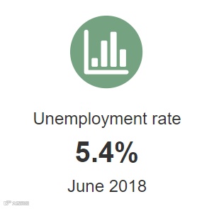 澳洲失业率为5.4%,劳动参与率65.6%。