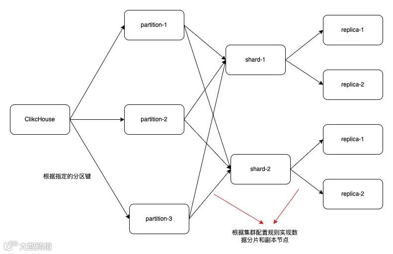 在 ClickHouse 中,为了提升查询性能及增加数据容错性,分别在水平方向和垂直方向上划分为分片(shard)及副本(replica)。