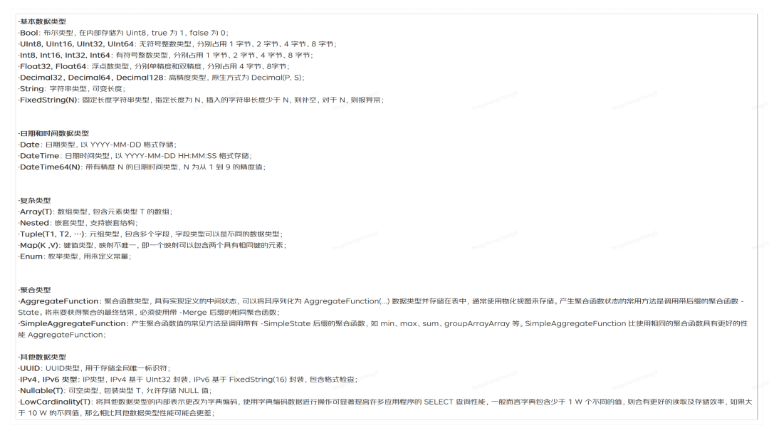 数据类型的设计充分考虑了大数据场景下的性能,带来了极高的查询效率,但同时也对使用者提出了更高的要求,使用者必须正确了解数据特点且必须正确使用数据类型,否则可能造成内存浪费、查询缓慢等问题。