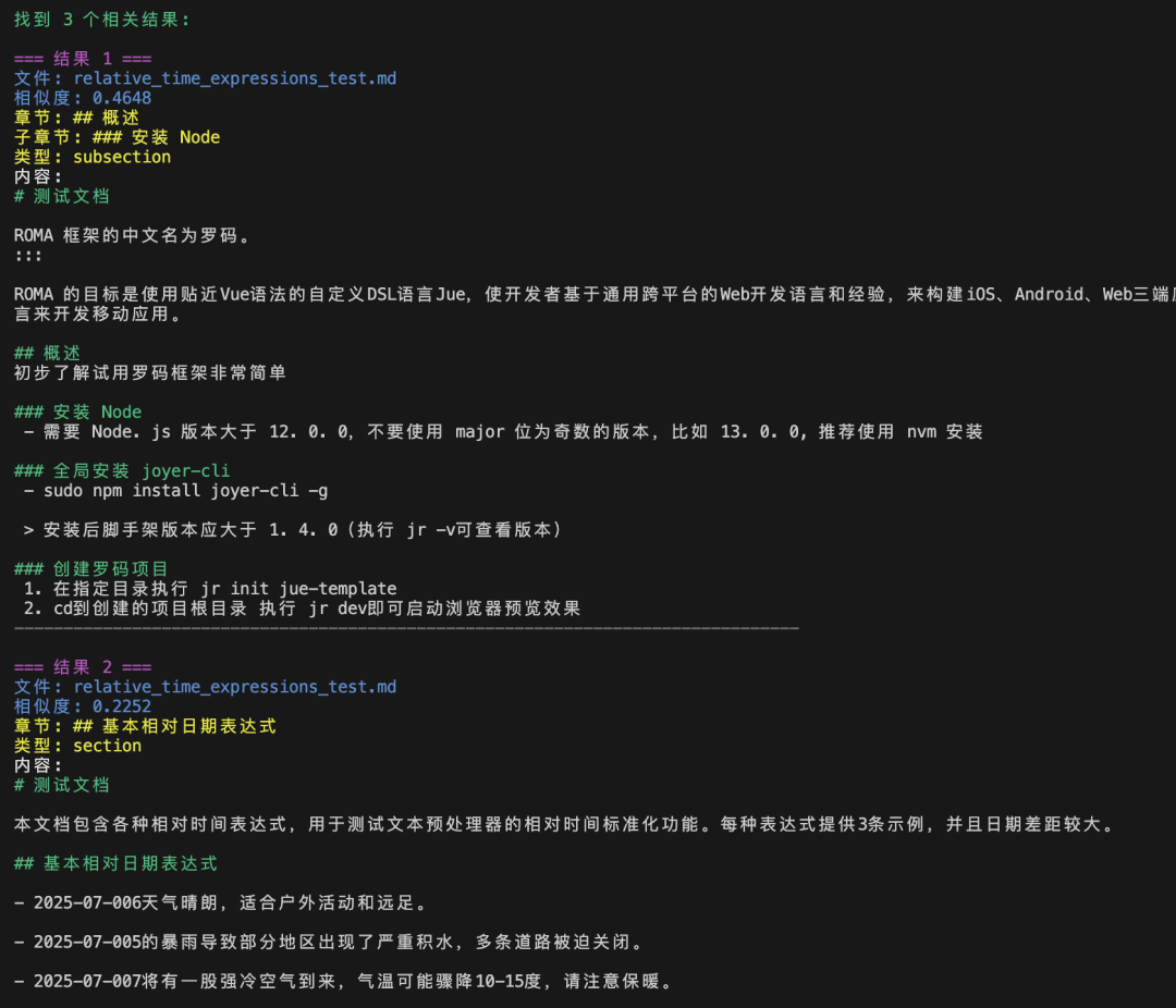 complete_metadata_chunk1 = {'file_path': '/mydocs/roma_intro.md','file_name': 'roma_intro.md','chunk_id': 0,'section_title': '# 什么是 ROMA?','subsection_title': '','section_type': 'section','chunking_strategy': 3,'content_type': 'product_description','main_entity': 'ROMA','language': 'zh-CN','creation_date': '2025-07-02', # 从文件系统获取'word_count': 42 # 计算得出,'topics': ['ROMA', '前端框架', '跨平台开发'],'entities': {'products': ['ROMA', 'Jue语言'], # 实体识别'platforms': ['iOS', 'Android', 'Web']},}