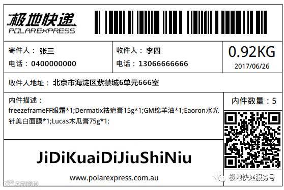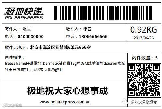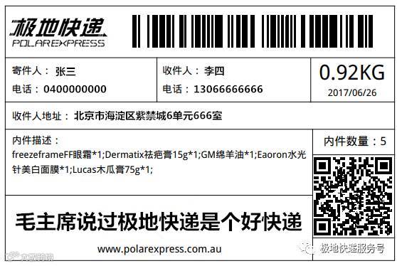 PS:小主不用担心单号太个性引起海关注意,包裹面单显示的还会是正经的极地快递单号,个性单号只显示在物流查询系统中哦~