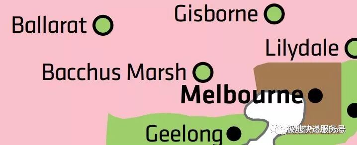 3、承诺送货上门地区为墨尔本地区(下图中棕色区域),超出派送范围的地区等同全国其他地区;