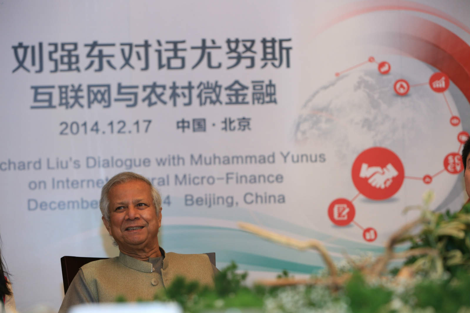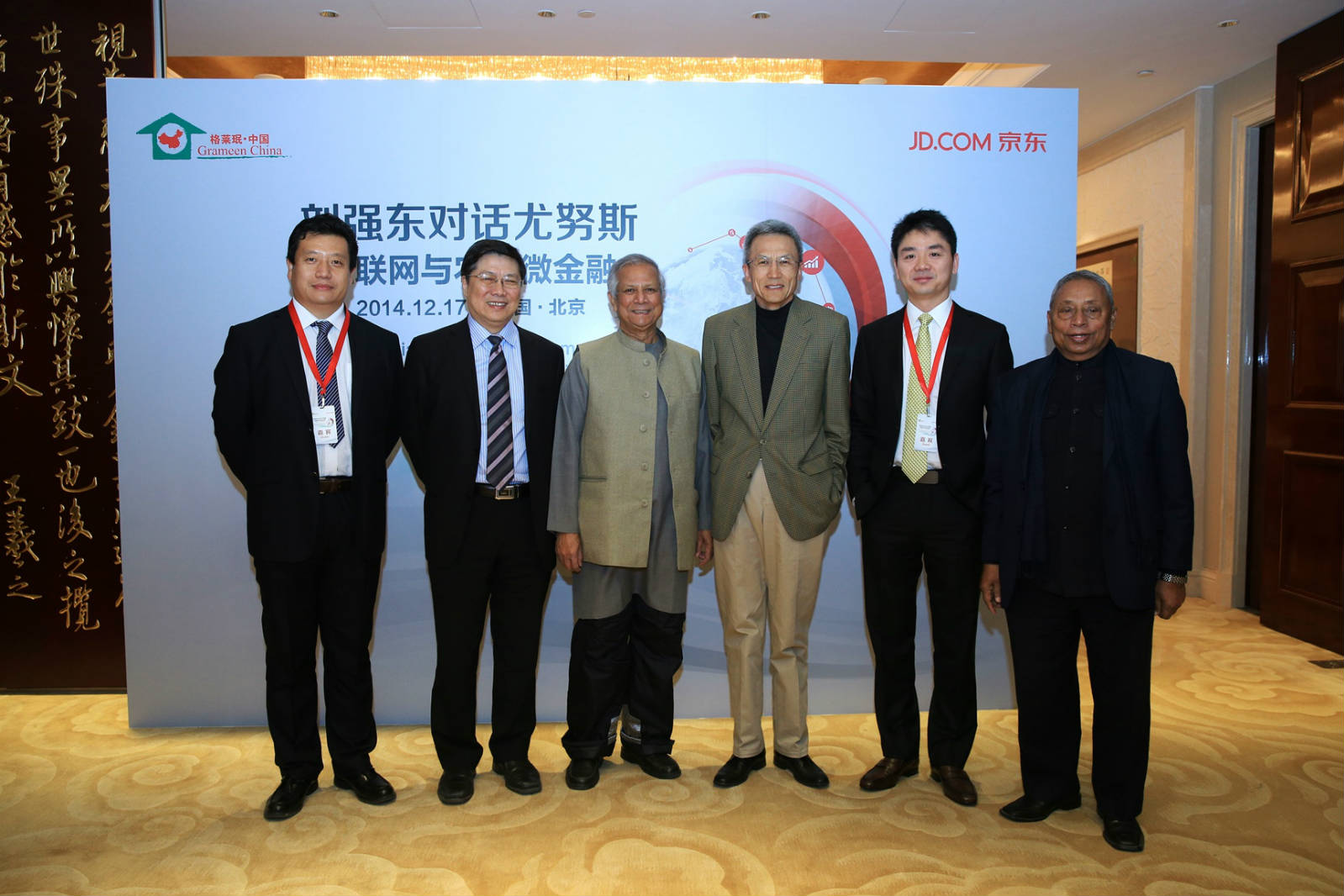 尤努斯教授现场邀请刘强东先生加入格莱珉中国董事会,成为第一名企业董事成员,刘强东先生欣然同意并接受了聘书,并表示会与格莱珉一道,为中国农村消除贫困做出贡献。