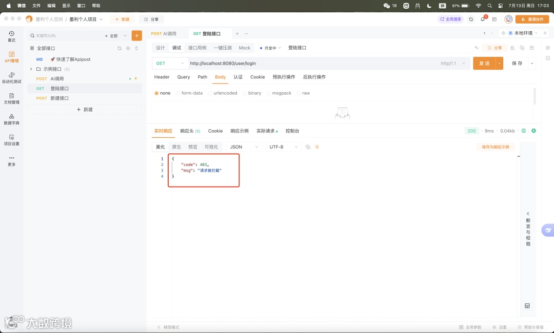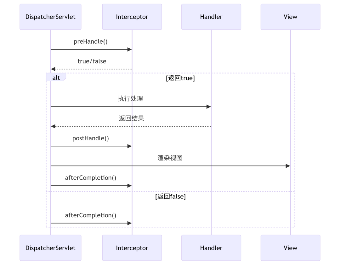 Java配置方式public class WebConfig implements WebMvcConfigurer {public void addInterceptors(InterceptorRegistry registry) {registry.addInterceptor(new LoggingInterceptor()).addPathPatterns("/**").excludePathPatterns("/static/**");registry.addInterceptor(new AuthInterceptor()).addPathPatterns("/admin/**");}}
