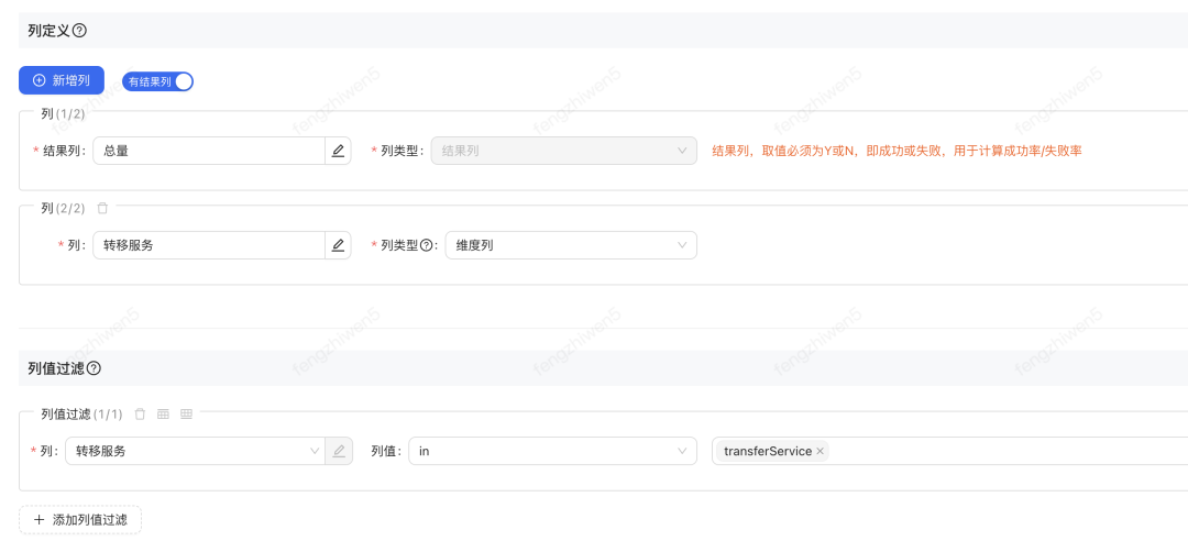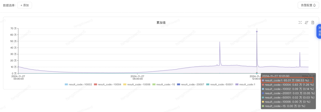 经过对异常数据的分析归类,通过结果列列值翻译功能,将与业务无关的异常映射为成功,去除干扰因素后,该指标变得基本稳定,具有监控意义。