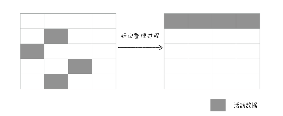 将存活对象复制到空闲区域,并有序排列,消除内存碎片。 -