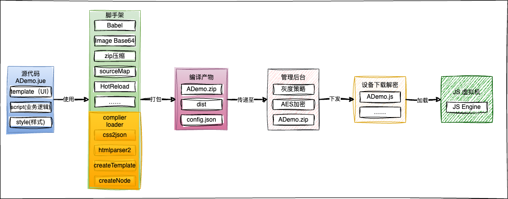 动态化- 罗码(Roma,后文统称动态化)是一个完全自主研发的一站式跨平台解决方案,一份代码,可以在 Android、iOS、Harmony 及 Web 上运行。动态化的跨端原理与 React Native 、Weex 一致,在吸取业界各跨端框架优势的基础上,加上自主创新,打造的一个完全自主可控的综合跨端解决方案。其跨端的理论基础在于各端都具备统一解析和执行 JavaScript 的能力(JS 虚拟机)。业务代码被打包成 js 文件,在各端被 JS 虚拟机加载,被解析成多条不同功能的指令,调用原生宿主能力,完成数据的传递和视图的绘制。示意图如下: