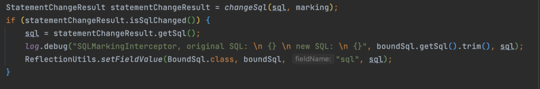 <!-- SQLMarking Plugin --><plugin interceptor="com.jd.sword.mybatis.plugin.sql.SQLMarkingInterceptor"><!-- 是否开启SQL染色标记插件 --><property name="enabled" value="true"/></plugin>