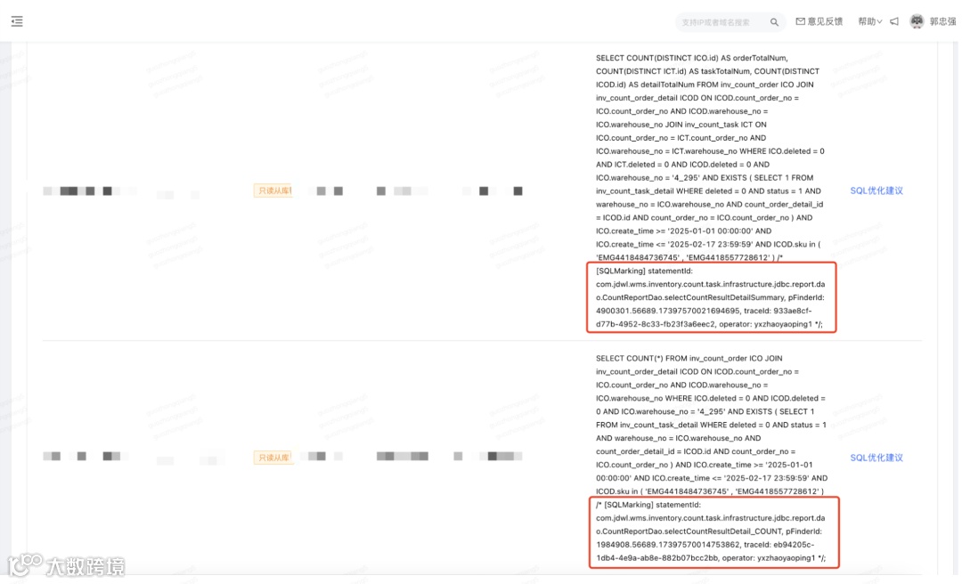 在此启发下,我认为对SQL也可以进行一些染色标记增强,通过这些标记可以一眼看出来这个SQL是哪些业务产生的。