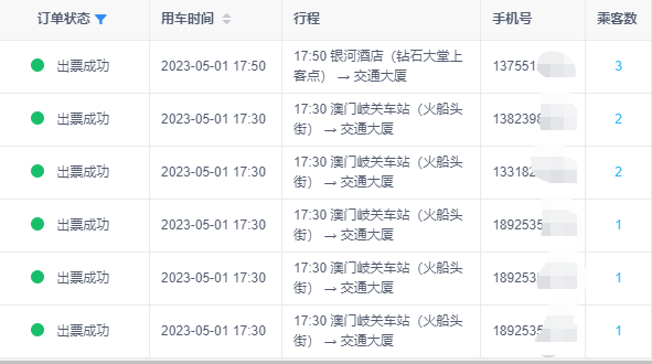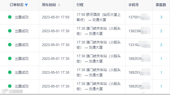岐关公司(火船头街)—银河酒店(钻石大堂上客点)—途经口岸(横琴珠海口岸)—天悦城—交通大厦