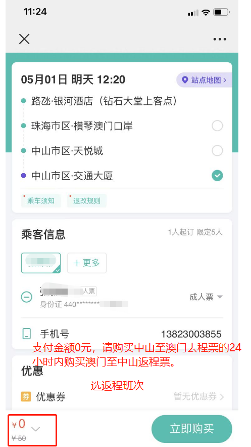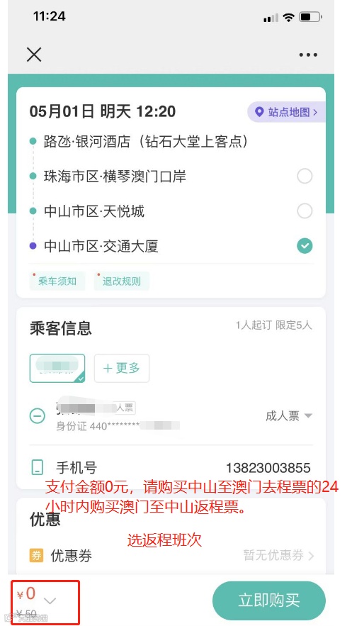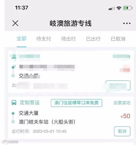 交通大厦—天悦城—途经口岸(横琴澳门口岸)—银河酒店(水晶大堂落客点)—岐关公司(火船头街)