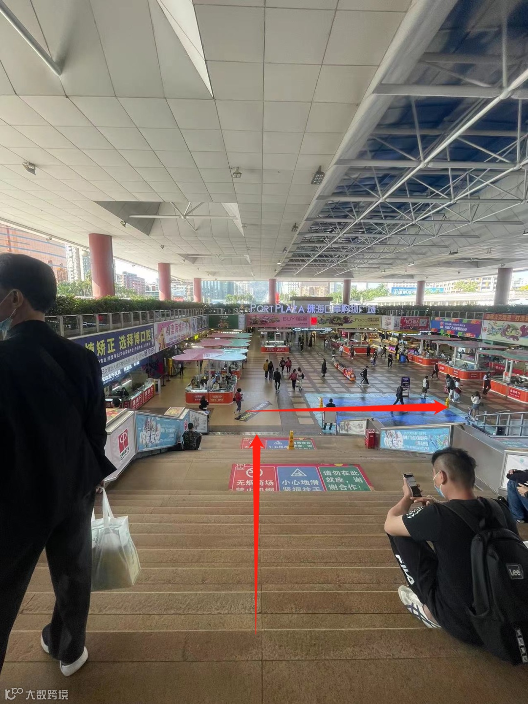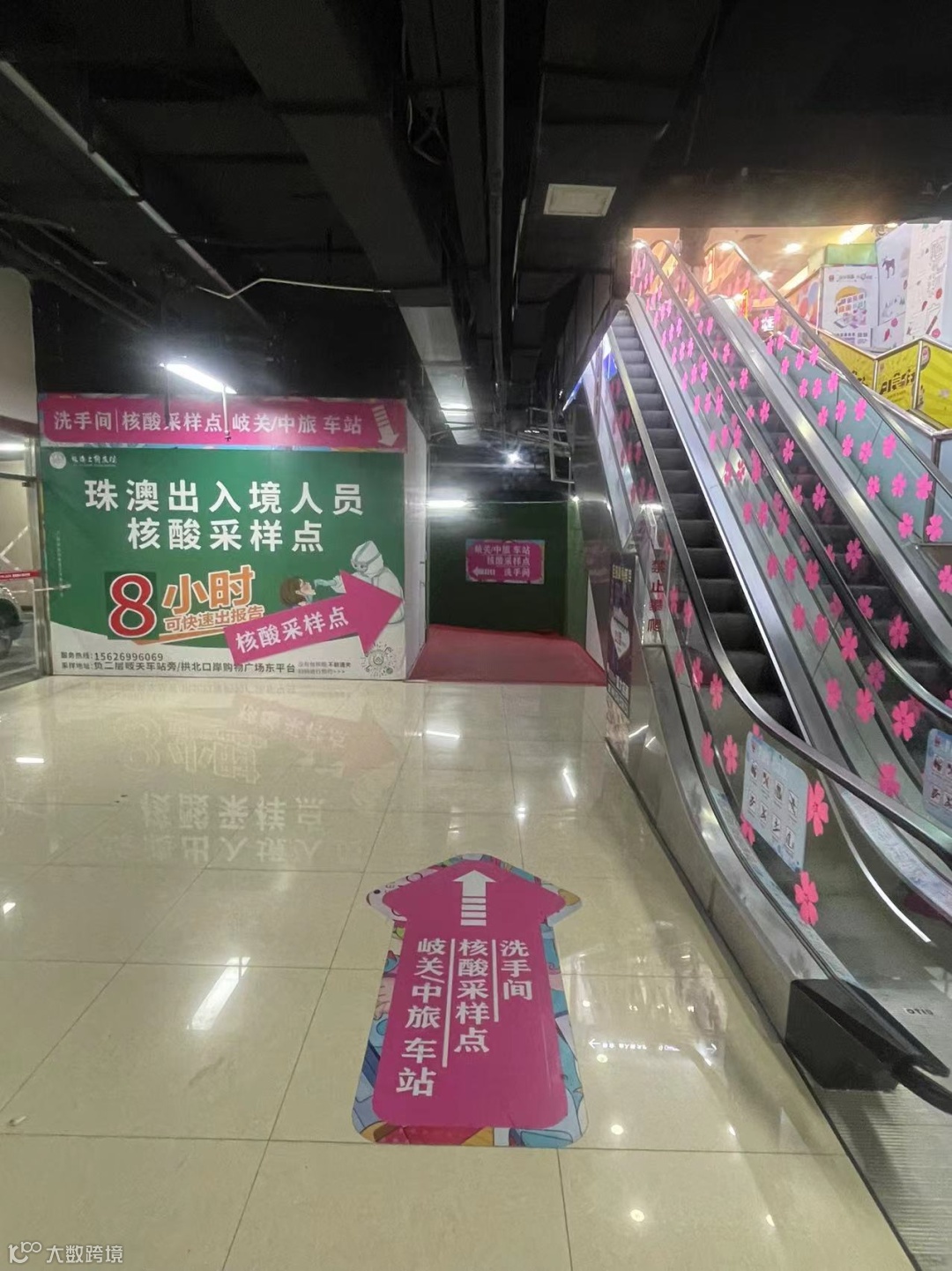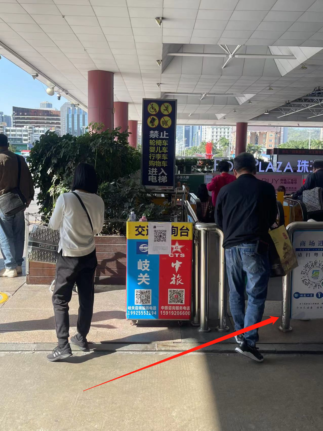 下口岸购物广场电梯口设有“岐关”咨询台,沿着手扶梯或楼梯抵达负一层。