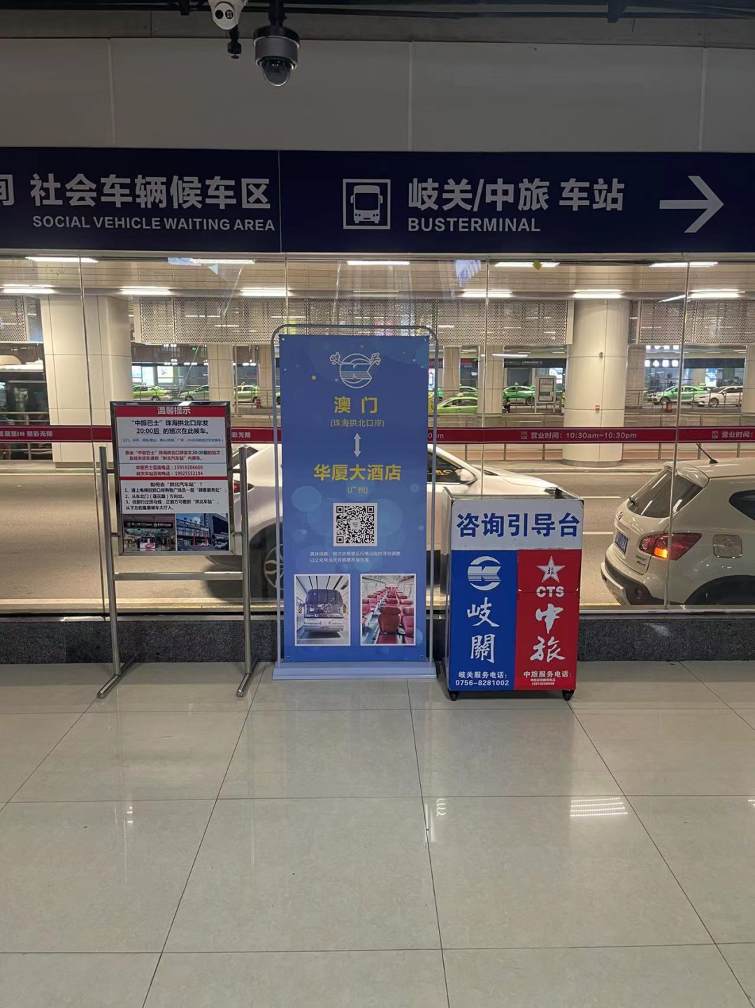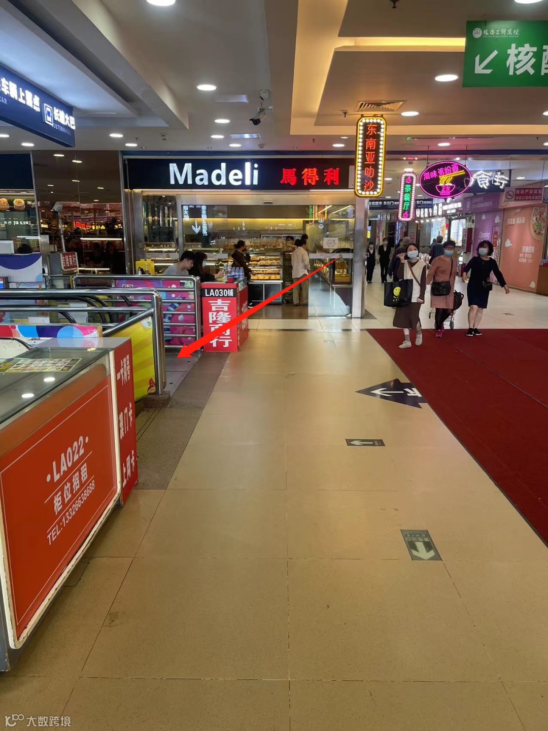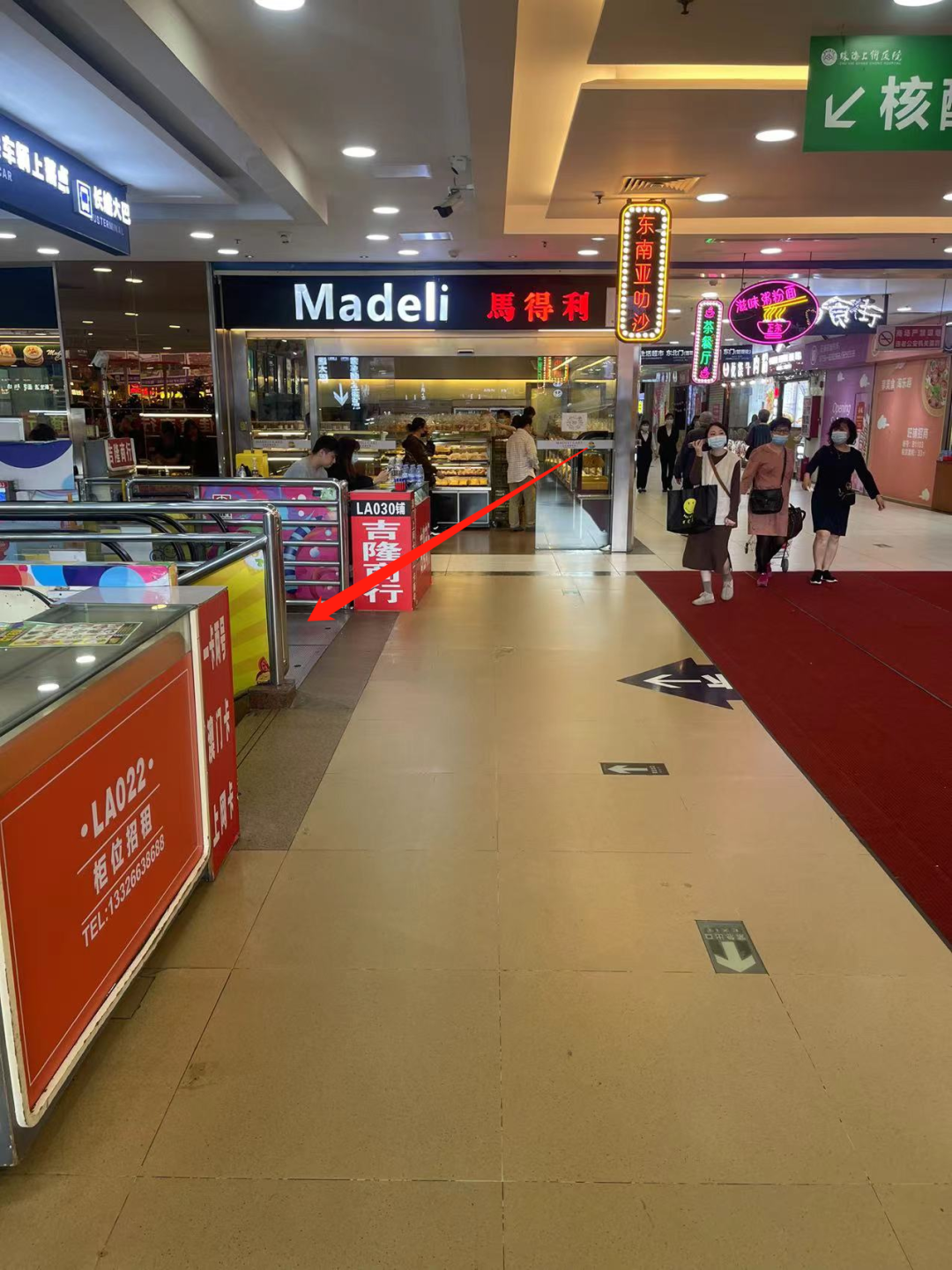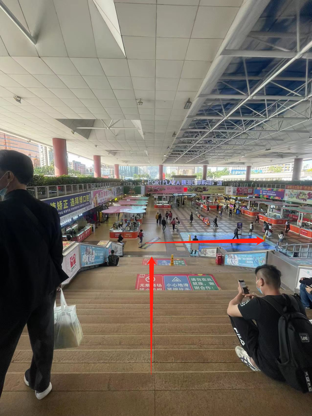 下口岸购物广场电梯口设有“岐关”咨询台,沿着手扶梯或楼梯抵达负一层。