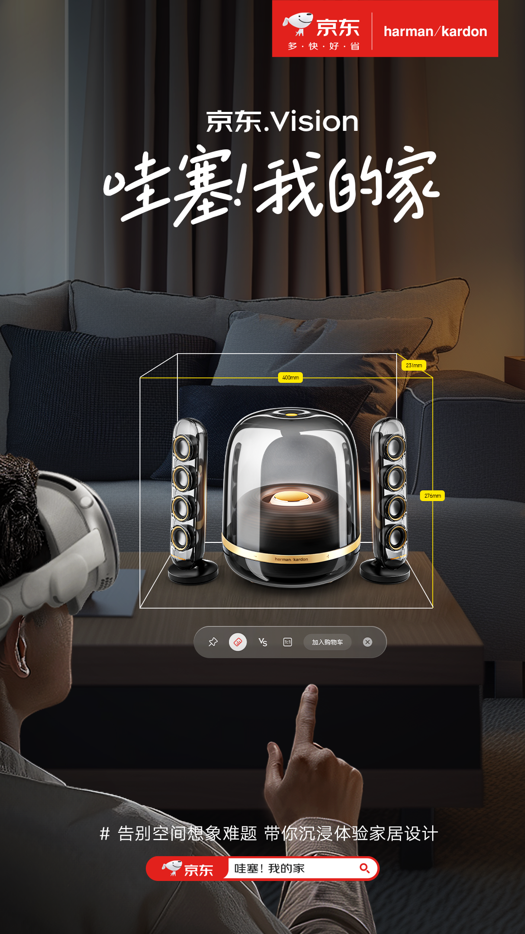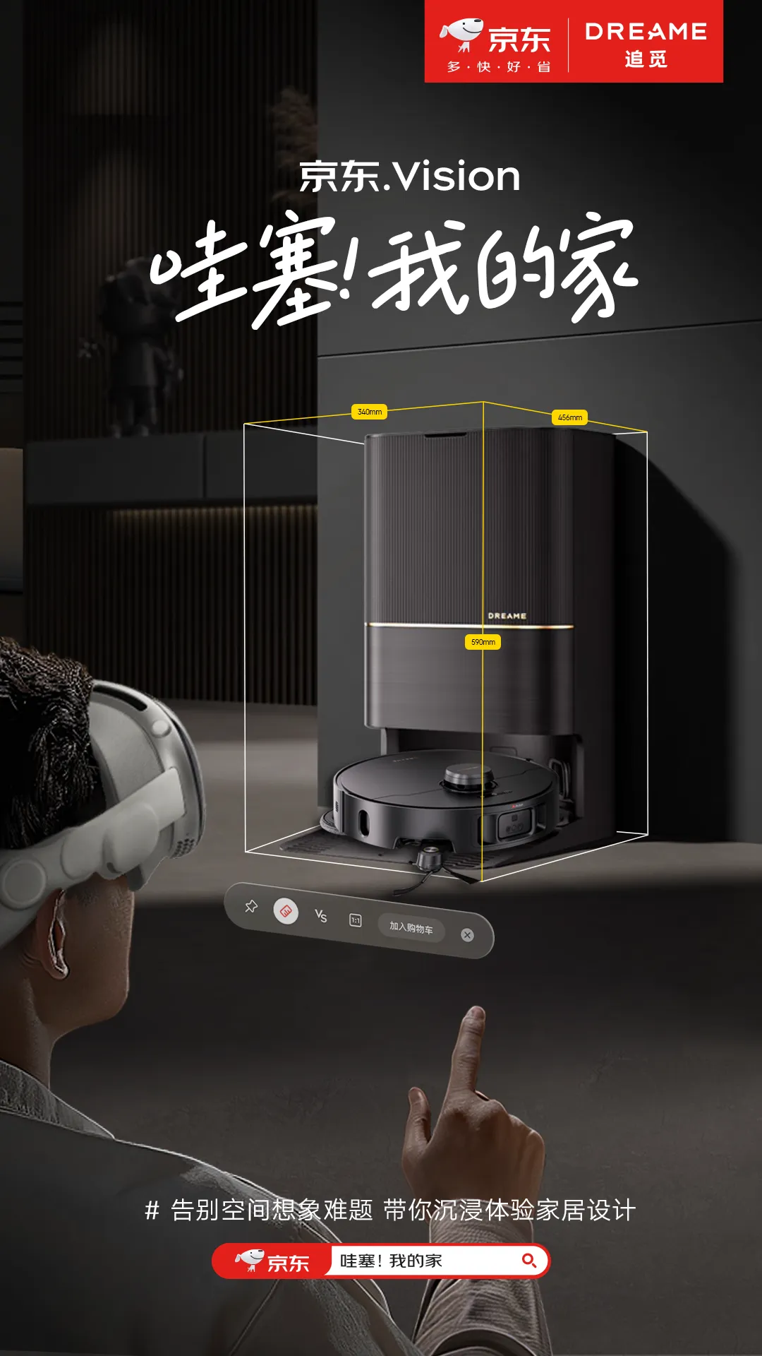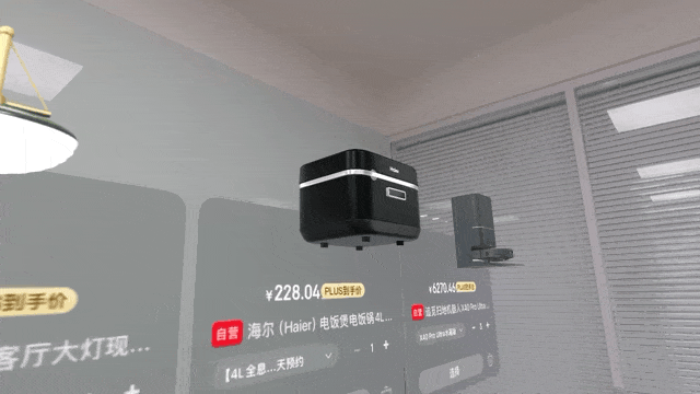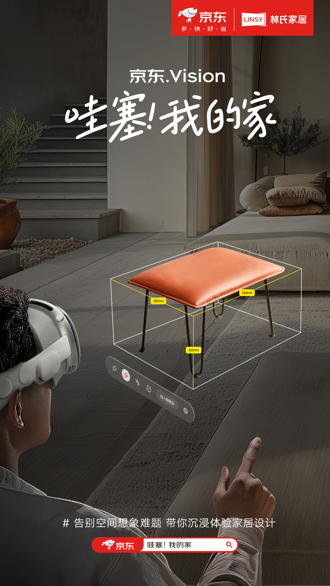 所以,京东.Vision利用Vision Pro的空间计算技术,为大家提供了一种全新的购物方式。在这里,你可以将心仪的产品1:1等比例“拖拽”到家中,直接看到每件物品的在空间中的布局和外观,真正享受“所见即所得”的购物体验。