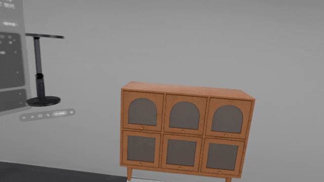 当然,以上都是“基操”。 为了更真实,京东.Vision还加入了独有的空间检测与真实物理碰撞能力。比如当茶几、椅子摆放时碰到墙面,就会自动停下来,不会穿墙而过。