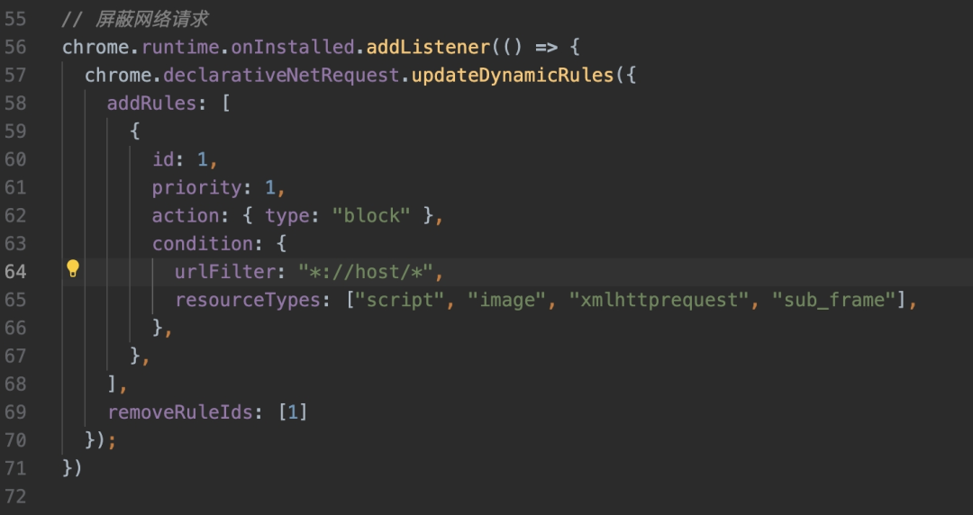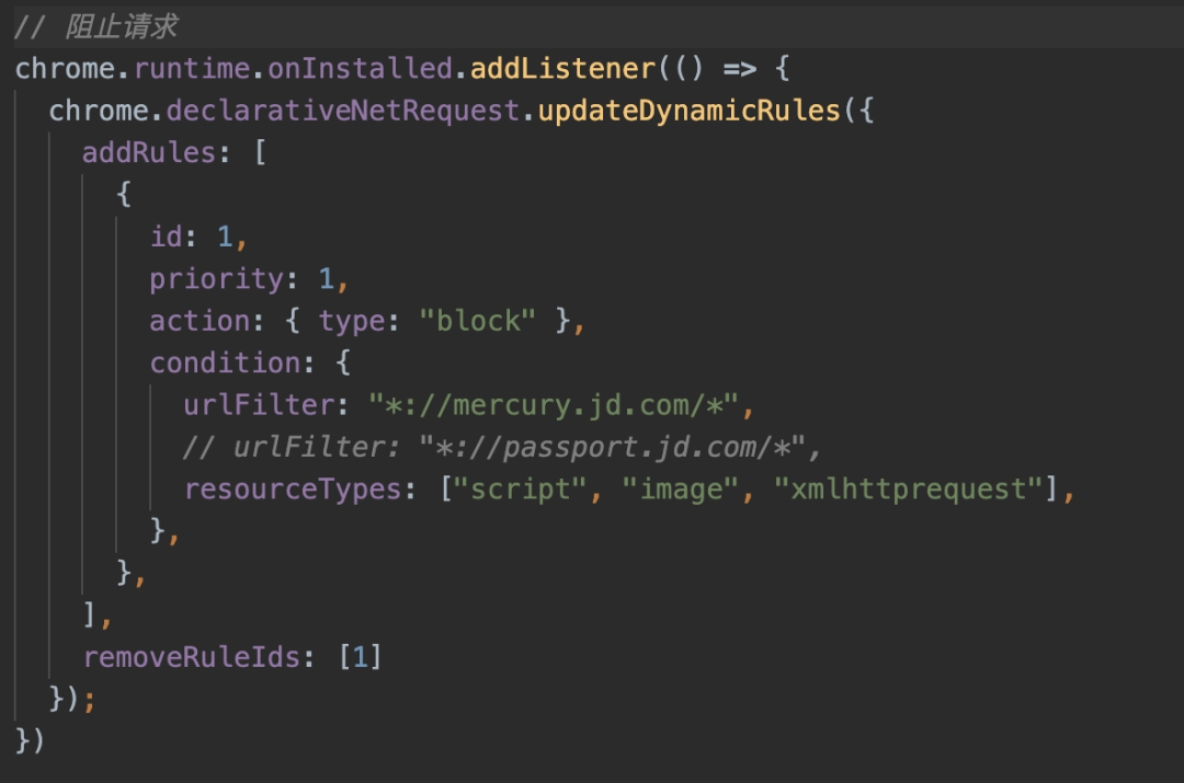 以下代码是浏览器屏蔽漏某些url请求的实现。
