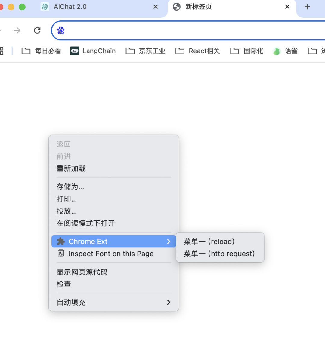 2. 有人不习惯点开右上角插件再点击功能按钮,怎么办呢,简单,给浏览器右键菜单添加快捷键。
