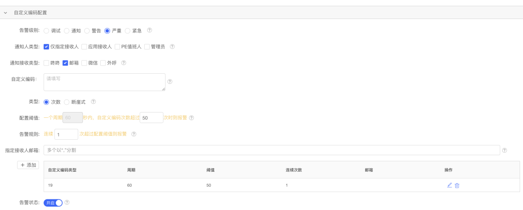 2. 对于新增应用,我们实施了后端服务异常码的标准化。因此,在监控方面,我们只需要配置一套统一的标准来进行监控。