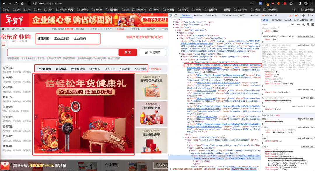 •检查 click 事件,收集用户交互后的接口响应数据,检测所有通天塔活动外联是否有效。