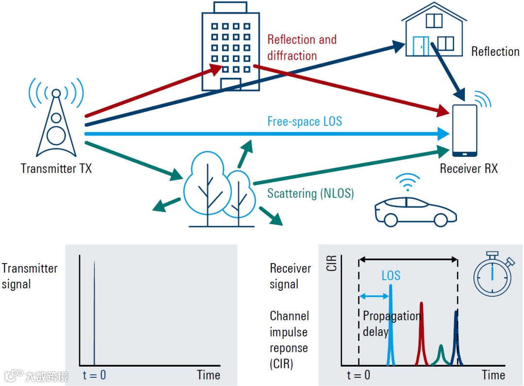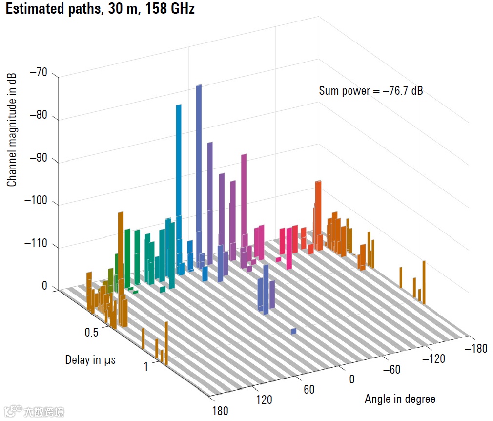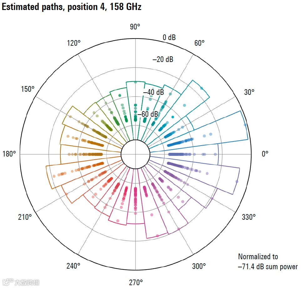 虽然大部分功率来自视距(LOS)方向,但重要的多径测量覆盖了所有的方位角方向。